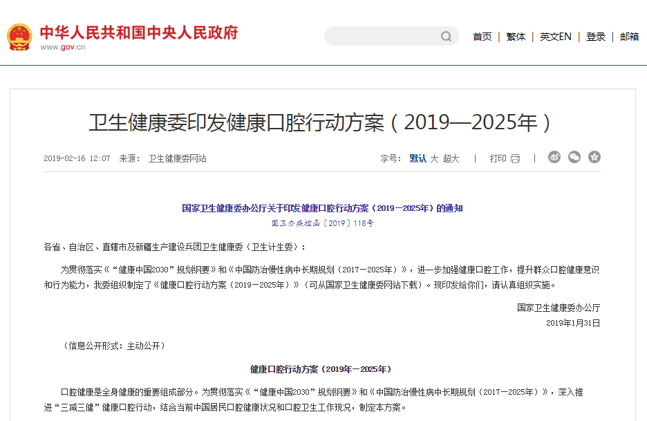 隨著消費水平的提升與健康意識的覺醒,消費者對口腔健康的重視程度日益增強。國家衛(wèi)生健康委辦公廳在2019年1月印發(fā)的《健康口腔行動方案(2019-2025年)》中明確提出了健康口腔行動工作指標(biāo)。方案倡導(dǎo),在2025年,成人每天2次刷牙率(%)將由2016年的36.1%提升至2025年的45%,并指出要推動口腔健康制造業(yè)創(chuàng)新升級。
